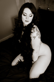 There are so many options for a boudoir shoot using just your birthday suit. We can use the satin sheets we carry. Maybe a lacy robe. Or how about a feather boa that covers just enough?
